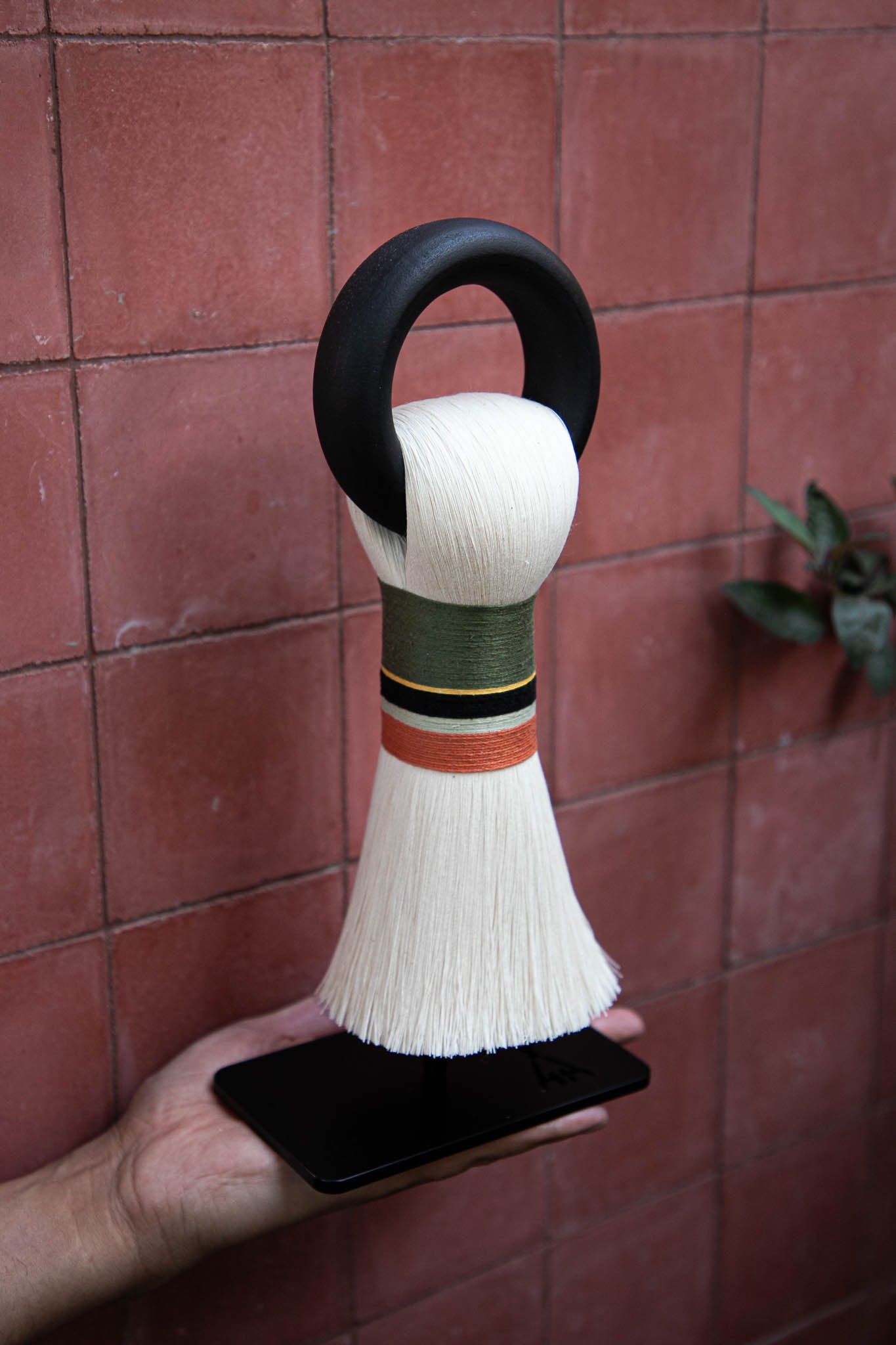 Nuestro hilo de algodón crudo en una de sus más pequeñas expresiones como acento decorativo. El Danzante Mini es un habitante ideal del escritorio, la mesa de centro o tu librero favorito.