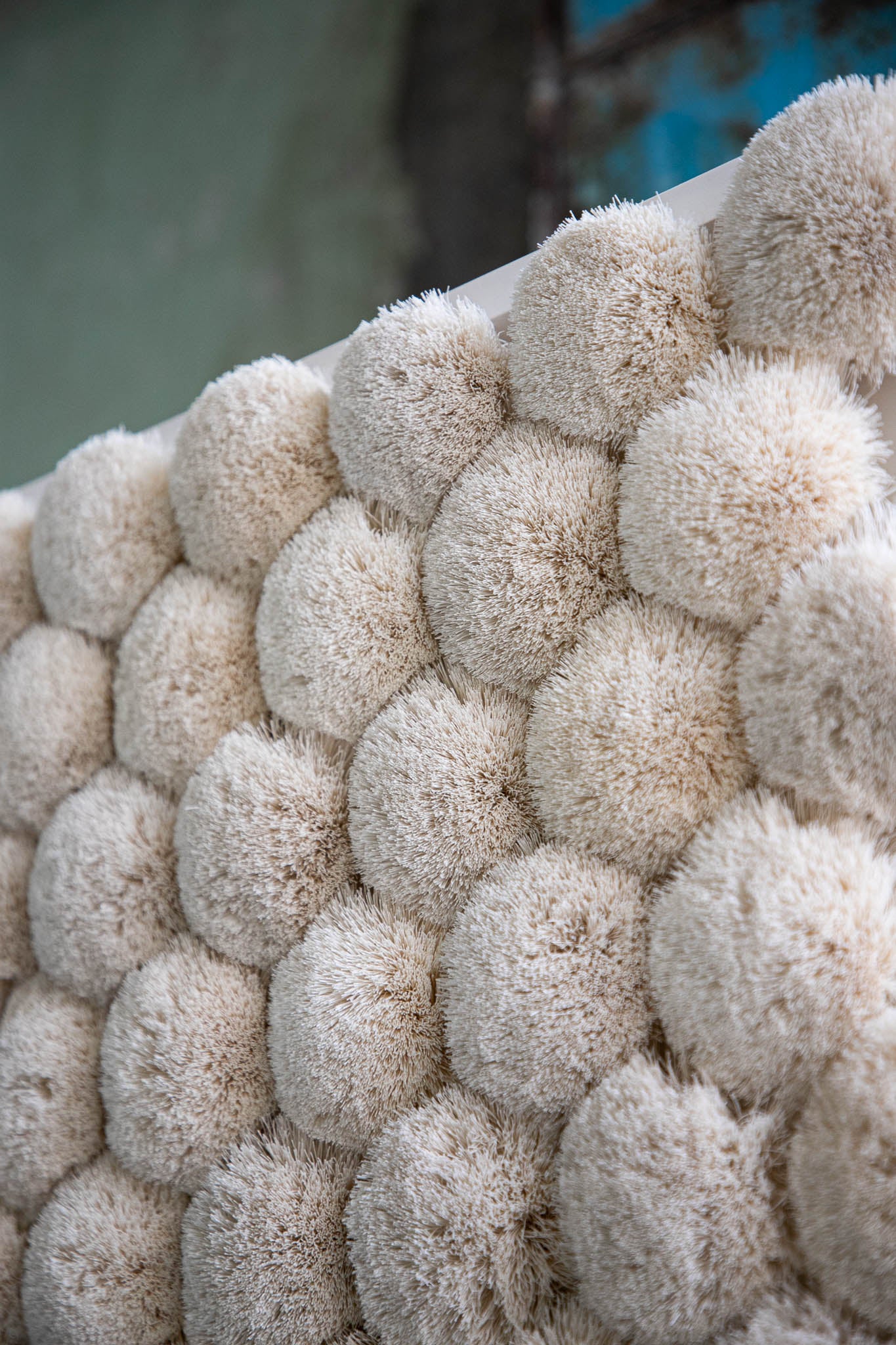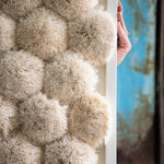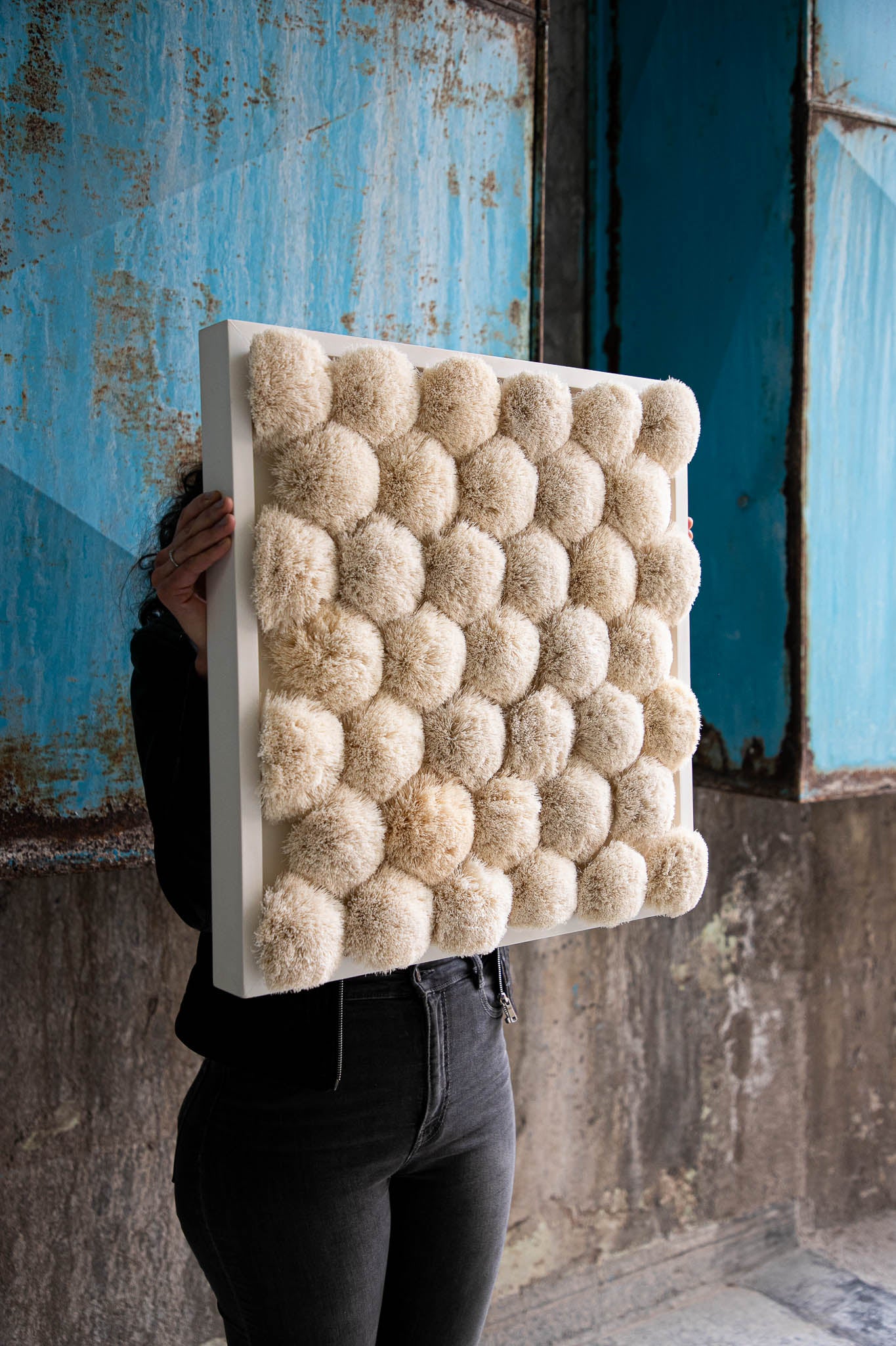 Recuperamos, clasificamos y almacenamos los remanentes del hilo de algodón utilizado en la producción de nuestras piezas de Gran Formato para su eventual reutilización. Transformamos la materia prima que bajo circunstancias de producción “normales” sería desechada, dándole una oportunidad para dar vida a piezas decorativas destinadas a habitar nuestros espacios interiores.