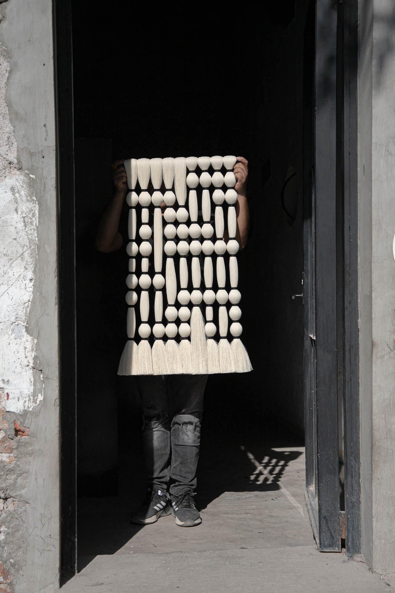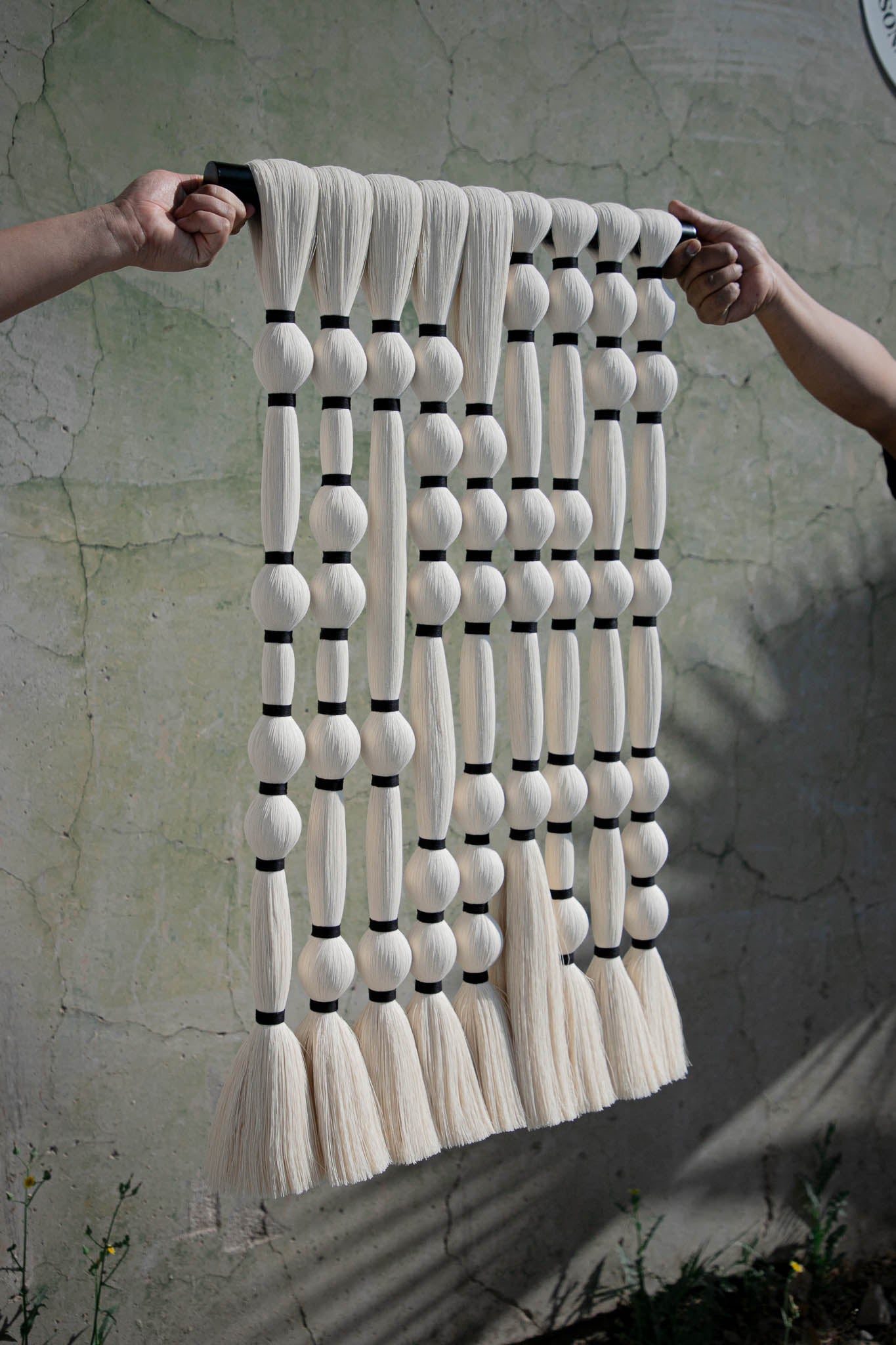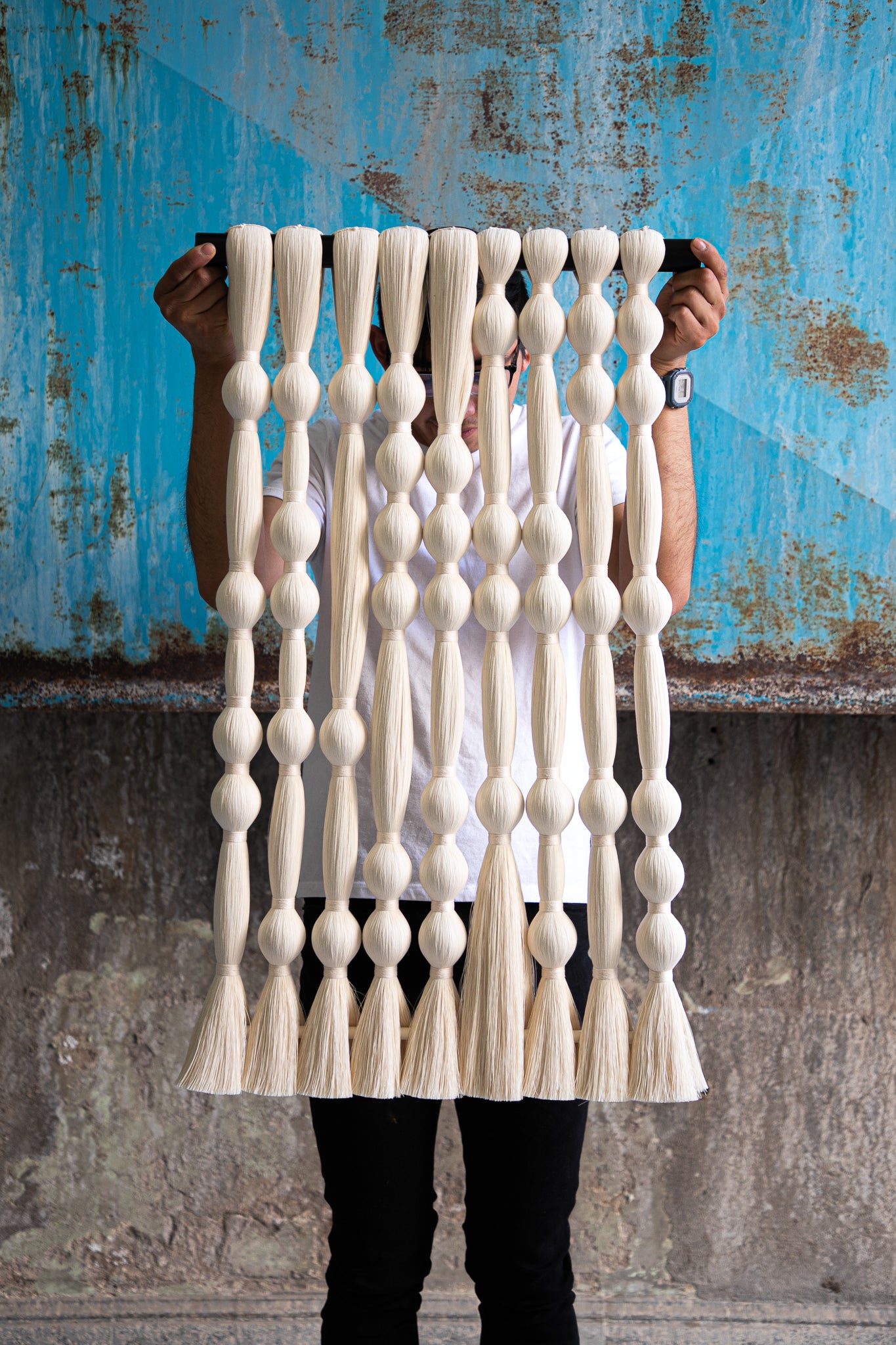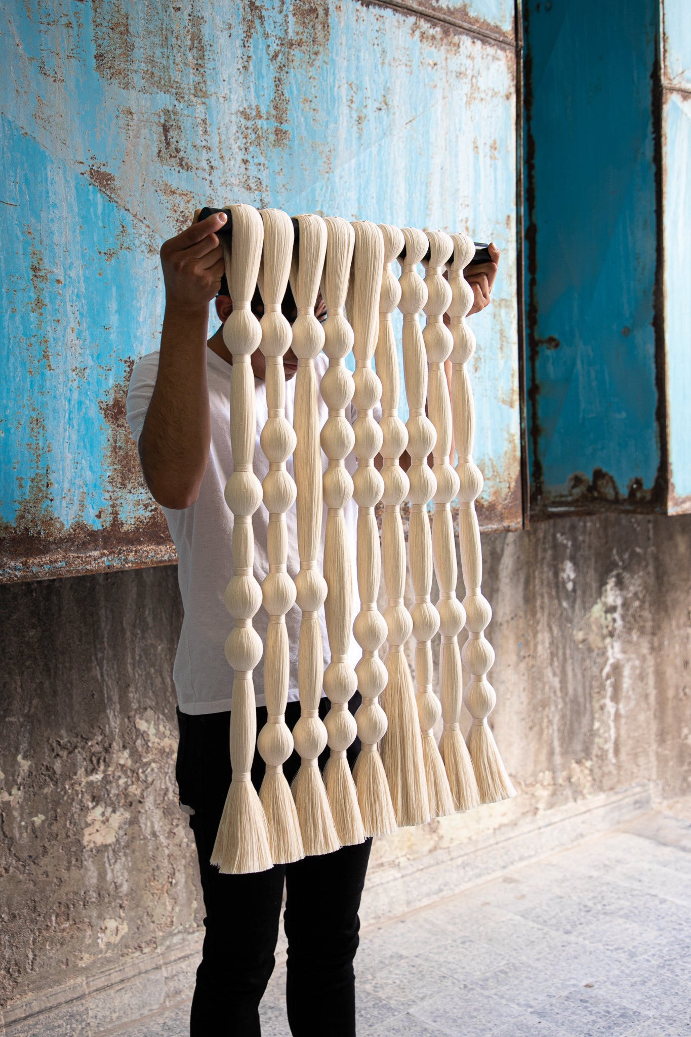 Colgante de Pared hecho a mano por artesanos a partir de hilo de 100% algodón crudo. Mitla Mini forma parte de la colección Caralarga Mini. Las piezas Caralarga ahora en versión miniatura, un formato más práctico que se volverá el elemento decorativo ideal para tu hogar.
