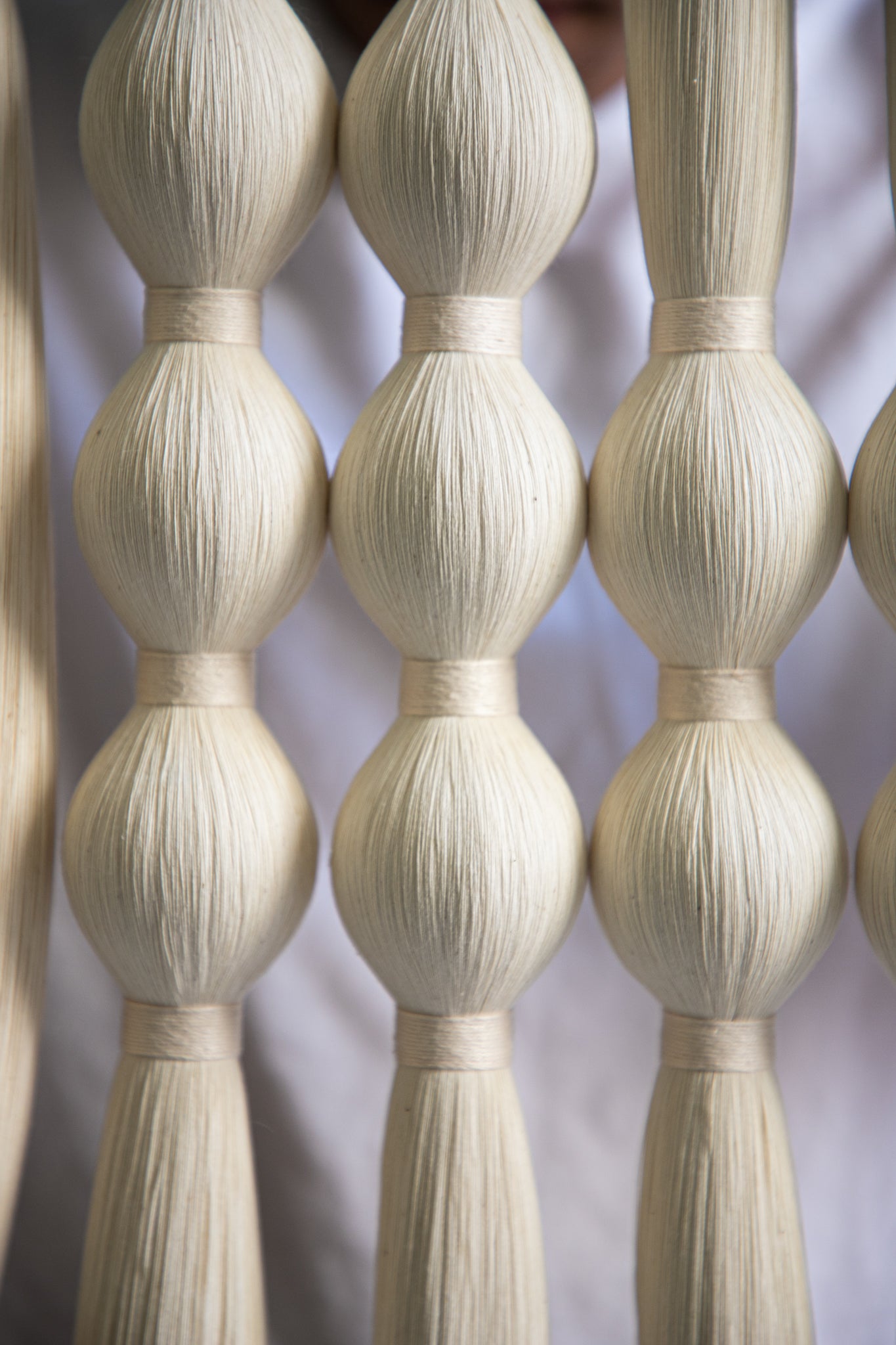 Con un enfoque en resaltar la belleza de la sencillez. Estos modelos juegan con el color, grosor y movimiento del hilo de algodón para formar hermosos contrastes entre los espacios de algodón y los amarres.