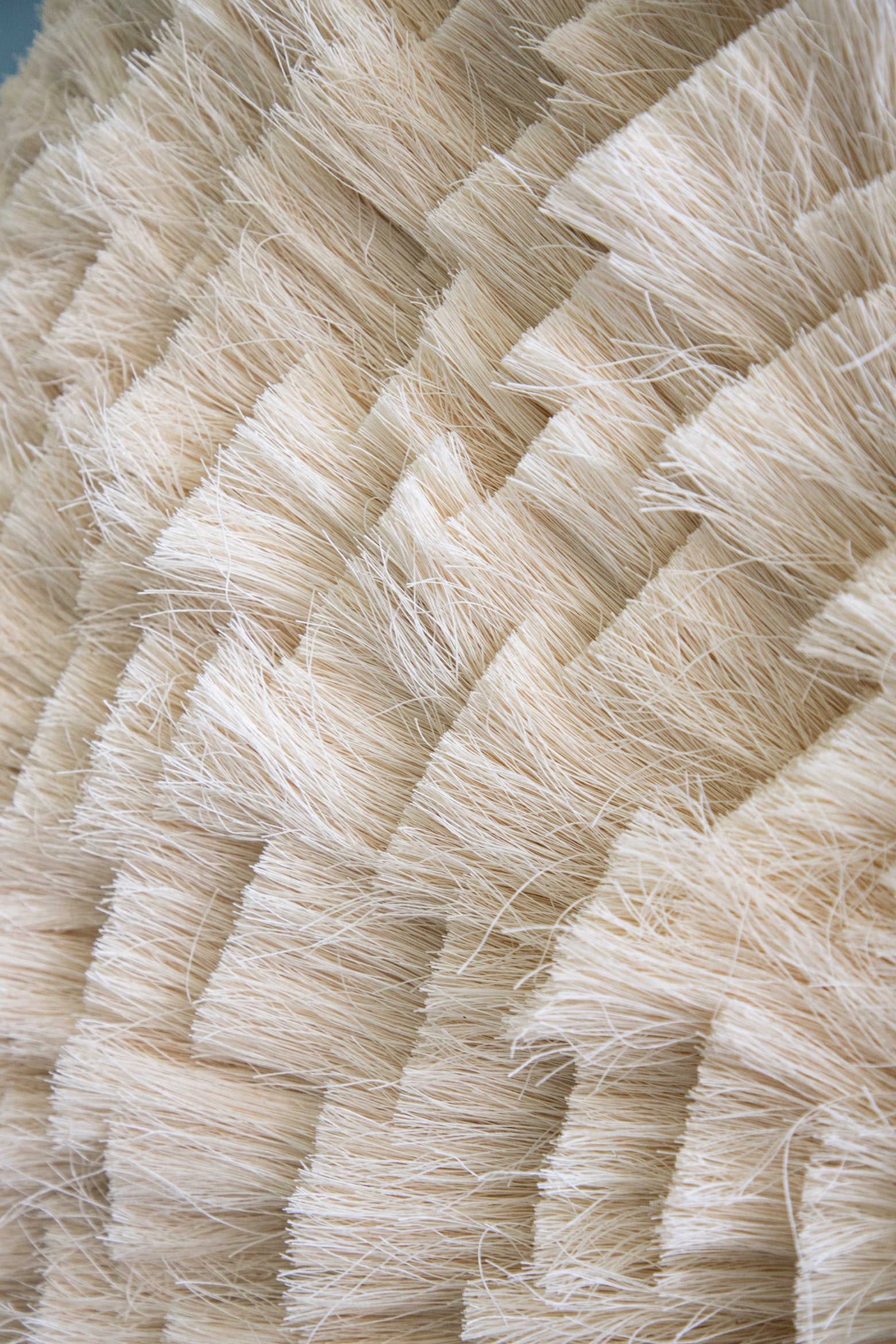 El Tapiz Tule forma parte de la Colección "Recuperado", una colección de piezas decorativas basada en los principios de recuperar, ensamblar y transformar. Recuperamos, clasificamos y almacenamos los remanentes del hilo de algodón utilizado en la producción de nuestras piezas de Gran Formato para su eventual reutilización. Transformamos la materia prima que bajo circunstancias de producción “normales” sería desechada, dándole una oportunidad para dar vida a piezas decorativas destinadas a habitar nuestros espacios interiores.