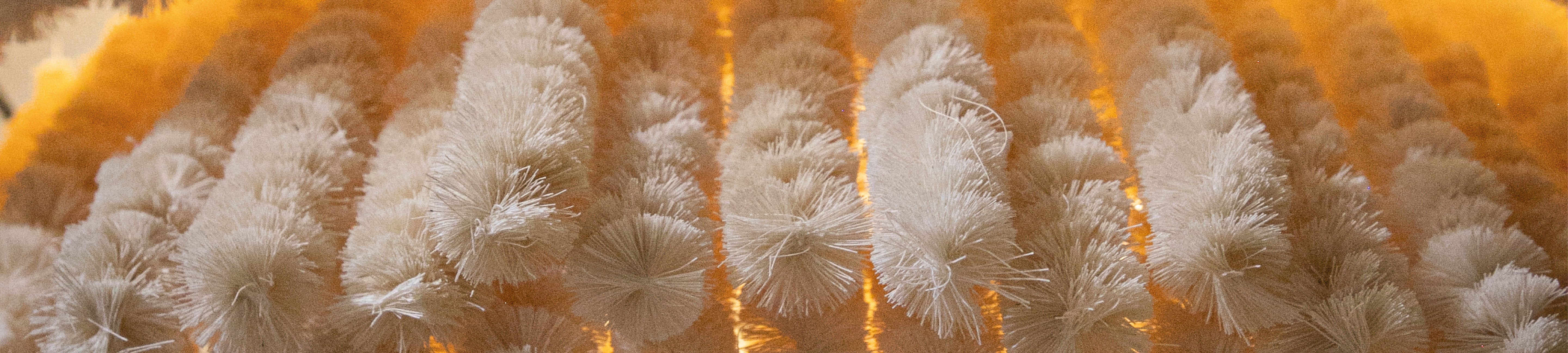 This technique has been the inspiration for this new lamp, in which we have experimented with cuts of cotton recovered from the workshop's production to create the texture of traditional festoons.