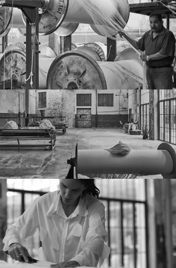 Durante varios años trabajamos con algodón proveniente de la antigua fábrica textil El Hércules, donde se ubicaba también nuestro taller. Esta emblemática fábrica, símbolo del auge industrial en Querétaro desde el siglo XIX, cerró sus puertas en 2019. Desde entonces, hemos continuado nuestra labor con algodón de nuevos proveedores nacionales, manteniendo la calidad y el espíritu de nuestra propuesta.