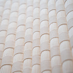El candil Sauce toma como referencia los tejidos tradicionales mexicanos de telar, donde la repetición de la trama construye superficies firmes y precisas. Su cuerpo principal se desarrolla a partir de un tejido cerrado y continuo, evocando la técnica del petate y los textiles elaborados en telar de cintura, en los que cada cruce del hilo es estructura y memoria.