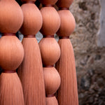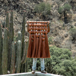Inspirada en los mosaicos de la zona arqueológica de San Pablo Villa de Mitla, Oaxaca. En esta pieza plasmamos una secuencia de grecas escalonadas, creando un telar lleno de historia, tributo a un monumento trascendente del México prehispánico. Un homenaje a la cultura Zapoteca.
