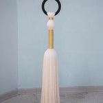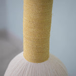 Estas bellas damas son una muestra de sensibilidad humana captada desde el diseño y materializada por las manos de los artesanos en nuestro taller. Hechas de una gruesa hilera de algodón sujeta a un aro en acabado natural o negro, con un bustillo de borla, cintura encorsetada por un amarre de hilaza, falda larga de mechón recortado y paradas sobre una base de herrería artesanal. Nuestras señoras no son sólo un acento decorativo de piso, sino las acompañantes ideales, un deseo hecho realidad; usted decida qué carácter le dará: tierna y orgullosa o altanera y vanidosa. En gustos se rompen géneros.