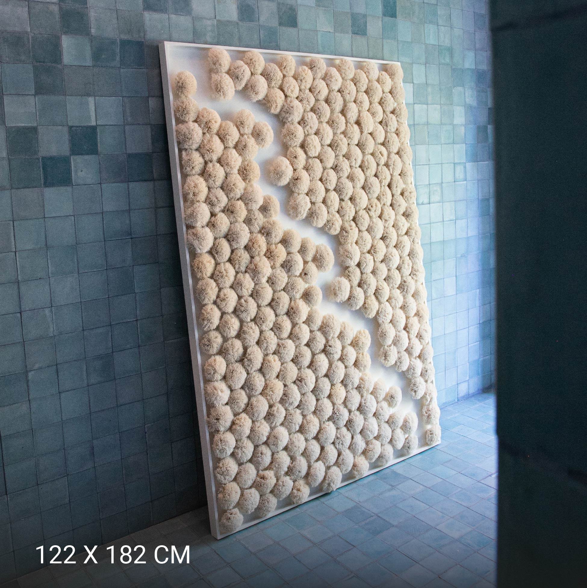 El cauce del río que baña los bosques tropicales y la selva húmeda del sureste mexicano. En esta pieza cada hilo de algodón personifica la vegetación, y el espacio irregular que la atraviesa, el fluir sinuoso de las aguas, símbolo de la vida y del movimiento. Grijalva rinde homenaje a la naturaleza, su efímera belleza y nuestra profunda conexión con ella.