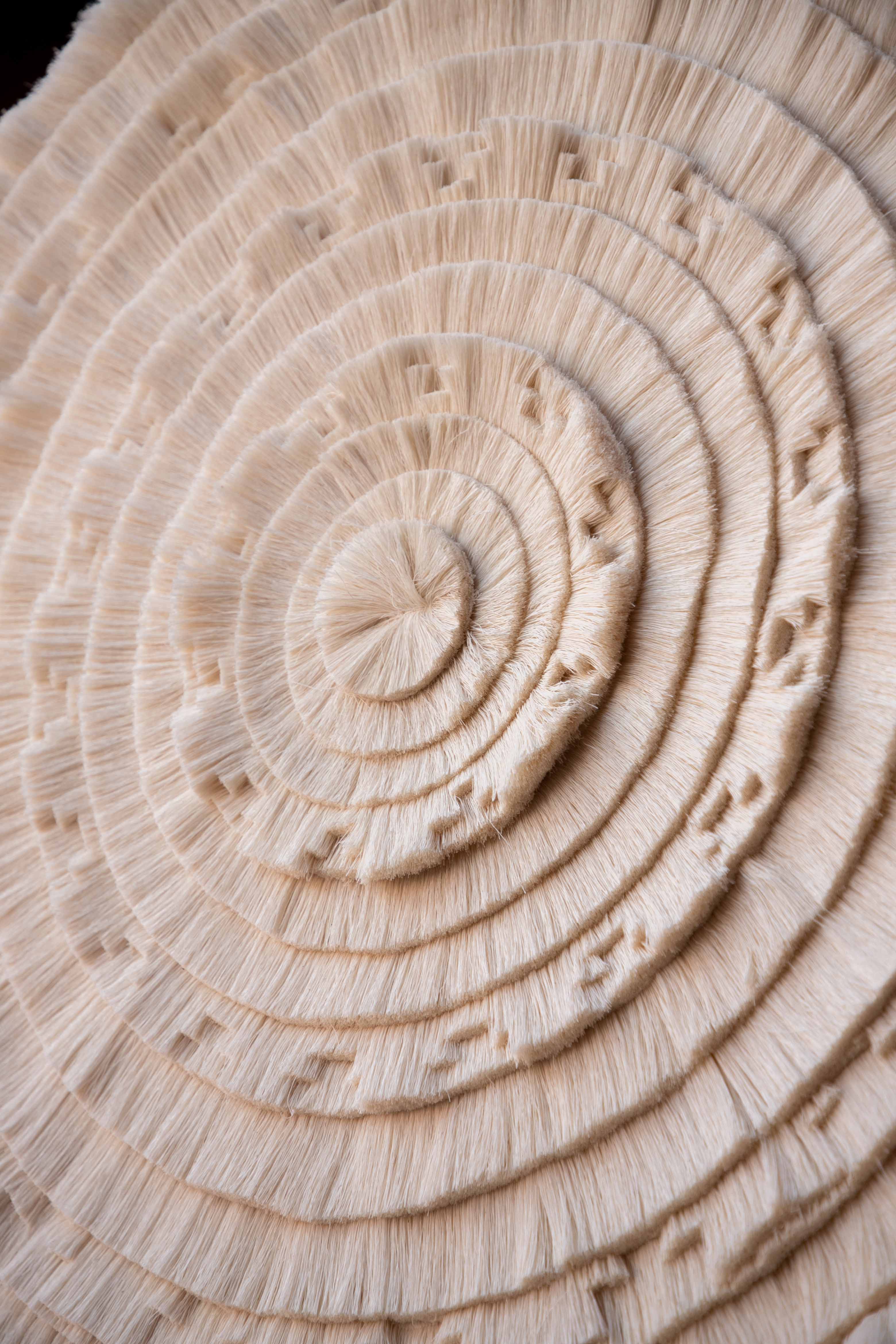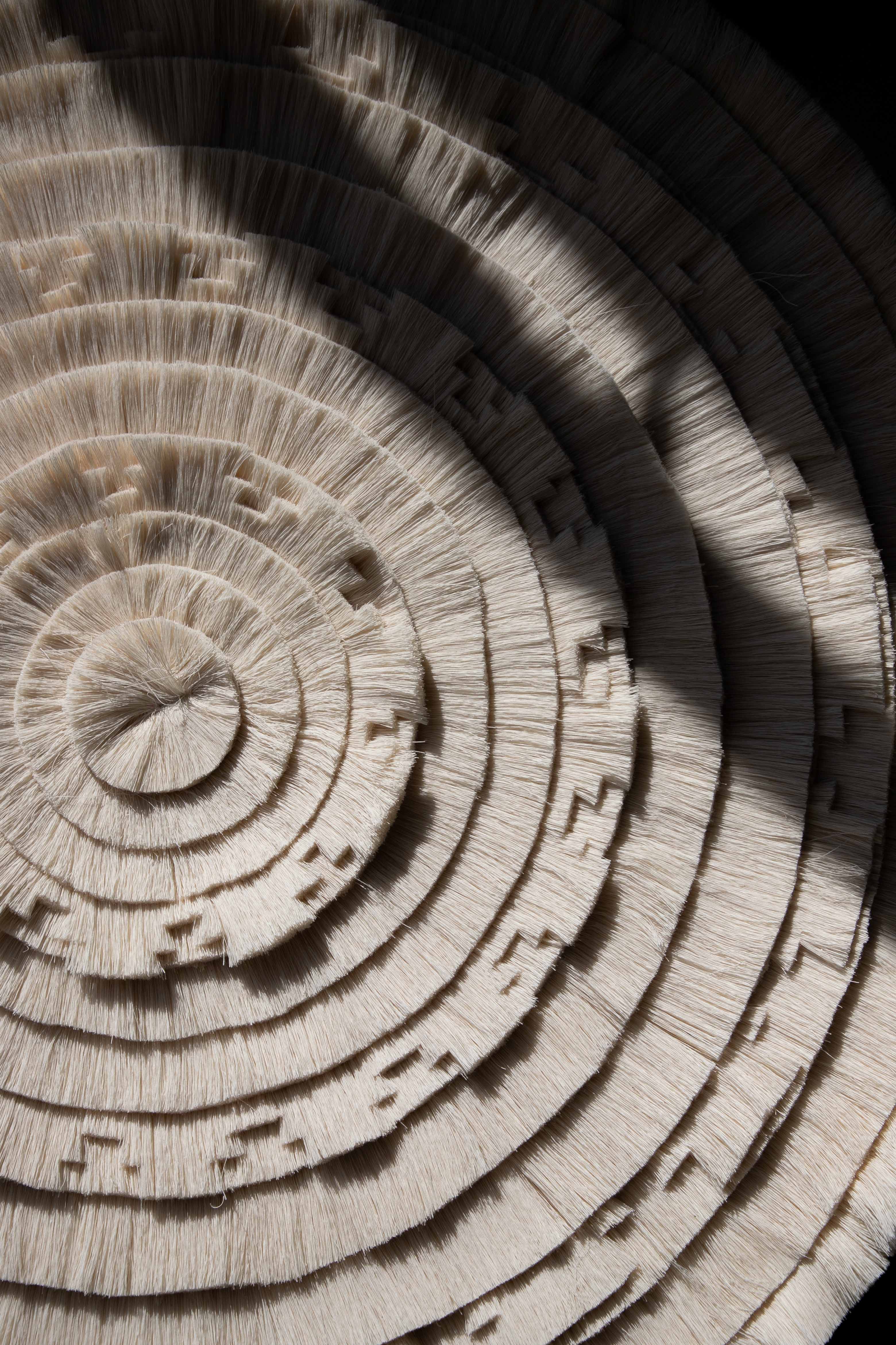 El Tapiz Calendario Azteca forma parte de la Colección "Recuperado", una colección de piezas decorativas basada en los principios de recuperar, ensamblar y transformar. Recuperamos, clasificamos y almacenamos los remanentes del hilo de algodón utilizado en la producción de nuestras piezas de Gran Formato para su eventual reutilización. Transformamos la materia prima que bajo circunstancias de producción “normales” sería desechada, dándole una oportunidad para dar vida a piezas decorativas destinadas a habitar nuestros espacios interiores.