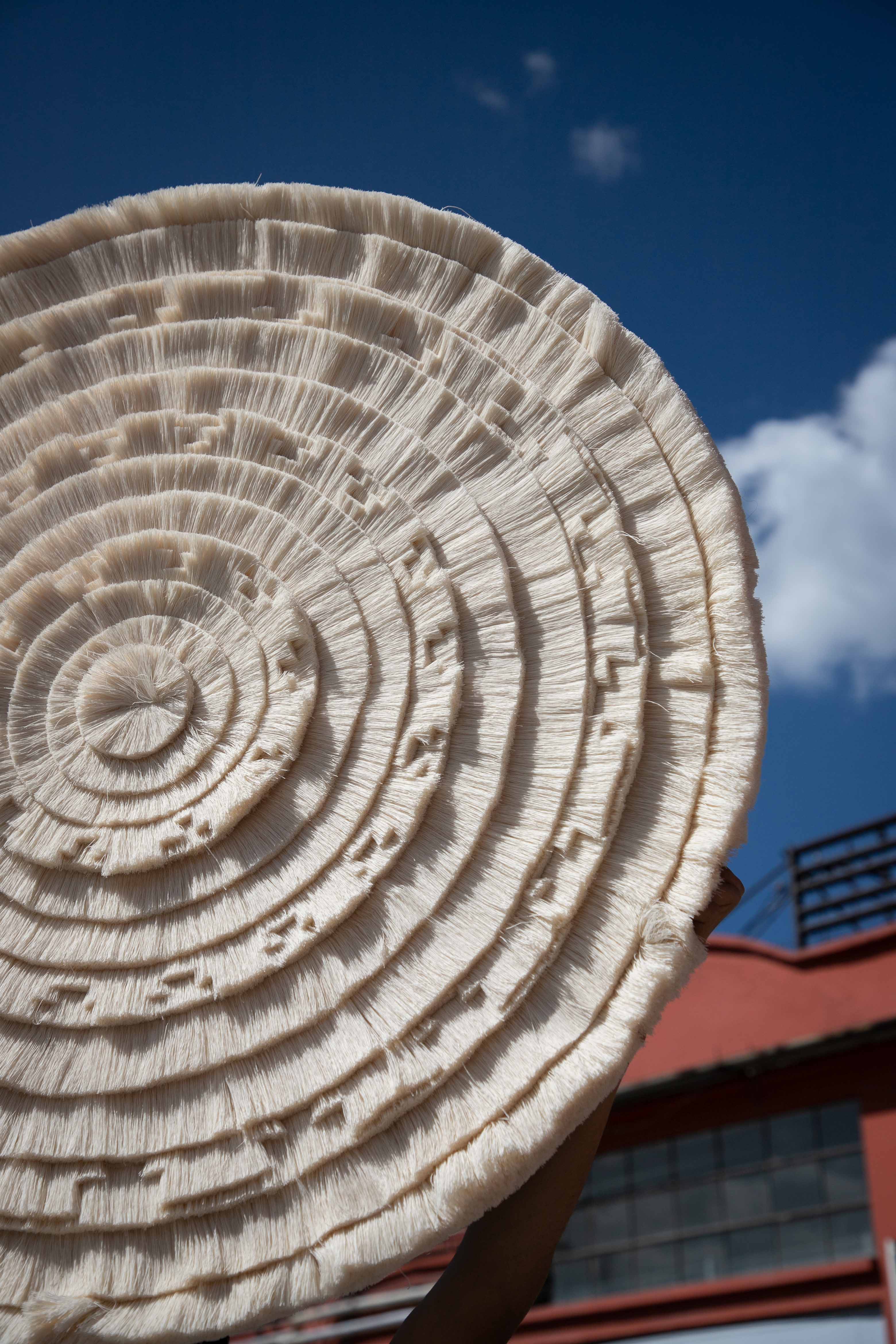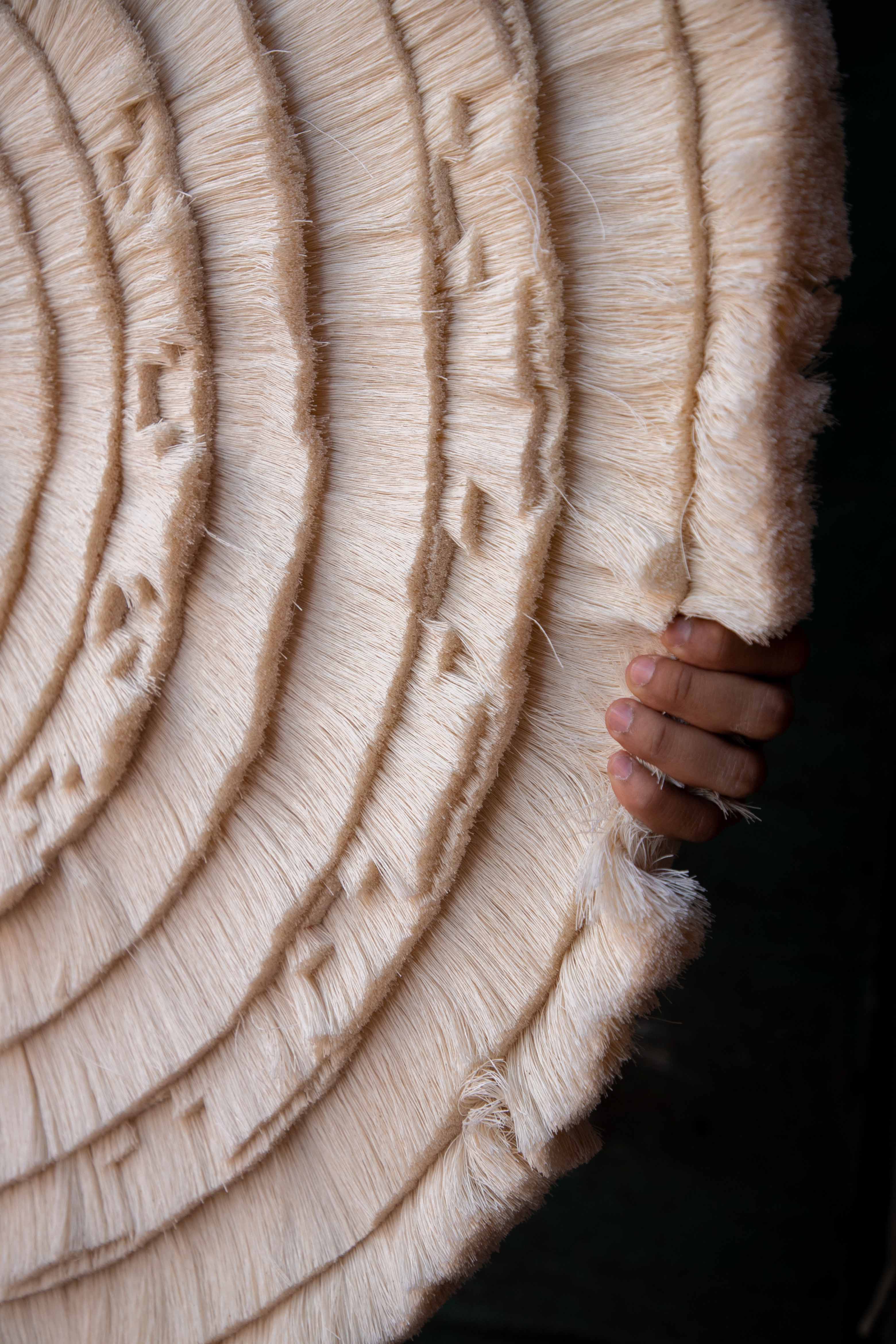 Recuperamos, clasificamos y almacenamos los remanentes del hilo de algodón utilizado en la producción de nuestras piezas de Gran Formato para su eventual reutilización. Transformamos la materia prima que bajo circunstancias de producción “normales” sería desechada, dándole una oportunidad para dar vida a piezas decorativas destinadas a habitar nuestros espacios interiores.